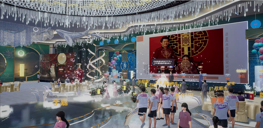 同時(shí),區別于普通線(xiàn)上婚禮的單維化、平面化及靜態(tài)化的呈現形式,《MetaLove元囍》將從空間場(chǎng)景、虛擬布景、圖像效果等多角度還原復刻婚禮現場(chǎng),凸顯婚禮的現場(chǎng)感和動(dòng)態(tài)感;